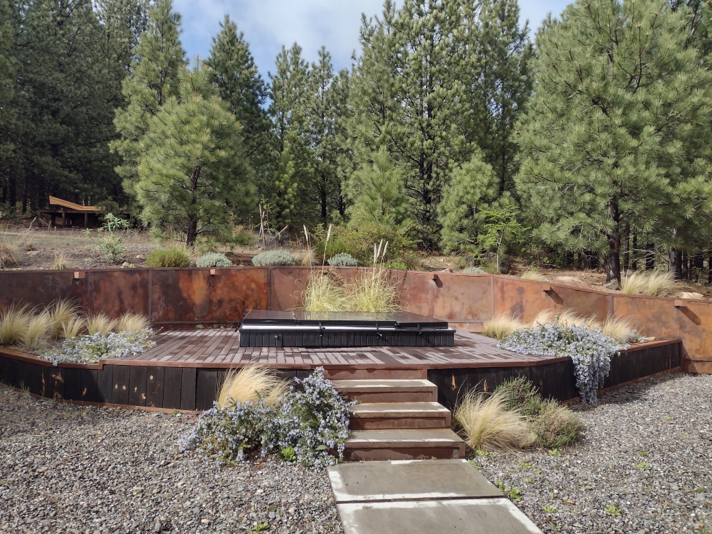 Es un proyecto donde el jardín no tiene césped. Buscando que el proyecto sea de bajo impacto ambiental y bajo mantenimiento.